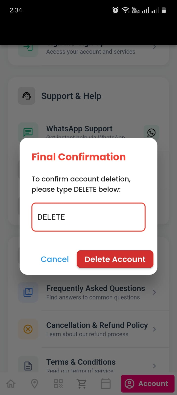 - A final confirmation screen will appear showing your deletion request is initiated.
